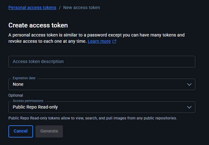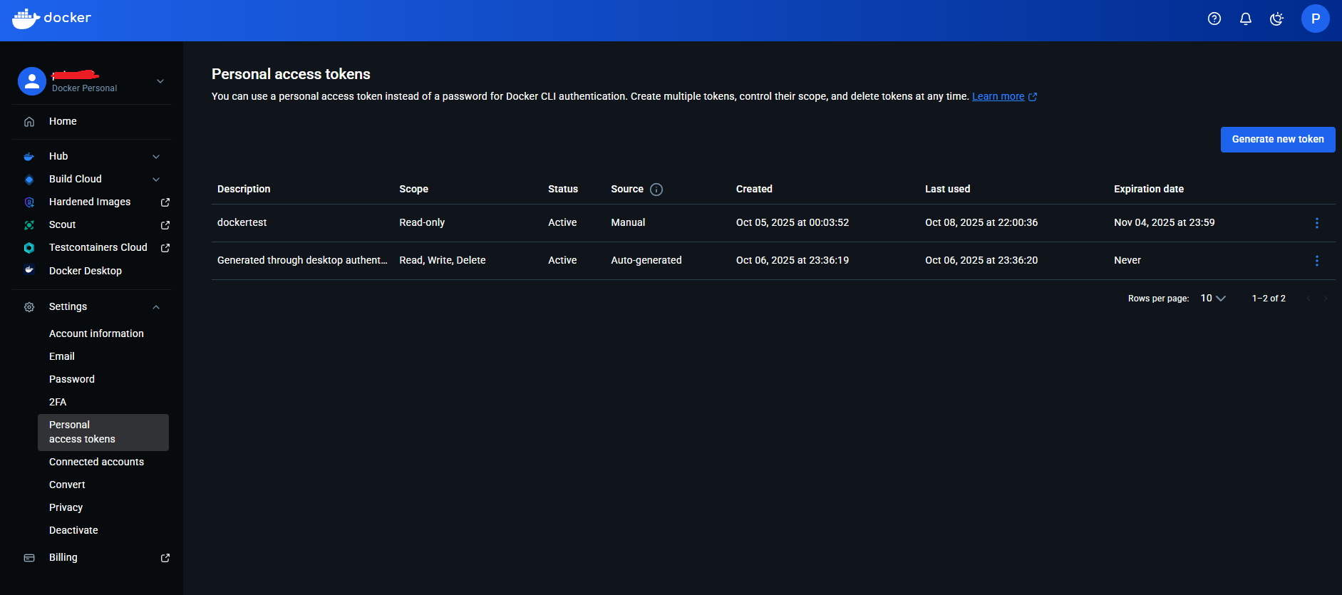 Docker Hub Personal Access Token (PAT) 是 Docker Hub 提供的身份驗證機制,用於替代傳統的使用者名稱和密碼組合。PAT 提供了更安全的方式來存取 Docker Hub 的 API 和映像倉庫。