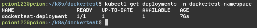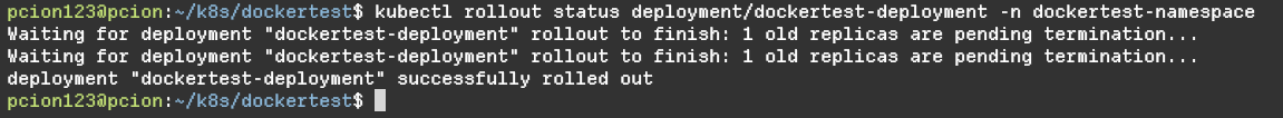 1 | kubectl rollout status deployment/dockertest-deployment -n dockertest-namespace |