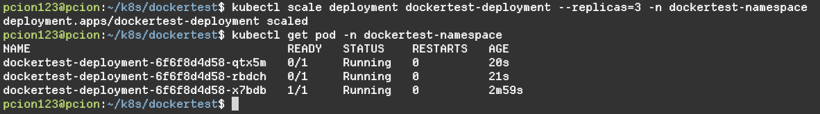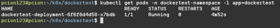 1 | kubectl get pods -n dockertest-namespace -l app=dockertest |