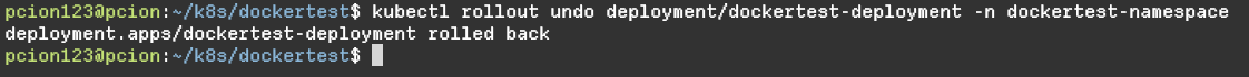 1 | kubectl rollout undo deployment/dockertest-deployment -n dockertest-namespace |