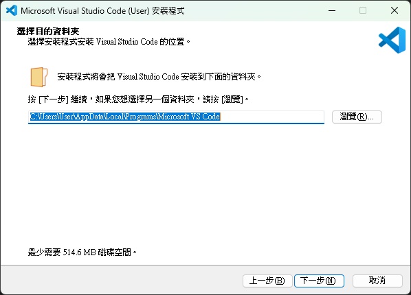 User Installer 僅為當前使用者安裝,無需管理員權限;System Installer 則為所有使用者安裝,需要管理員權限。一般情況下選擇 User Installer 即可。執行安裝程式,依照安裝精靈進行設定: